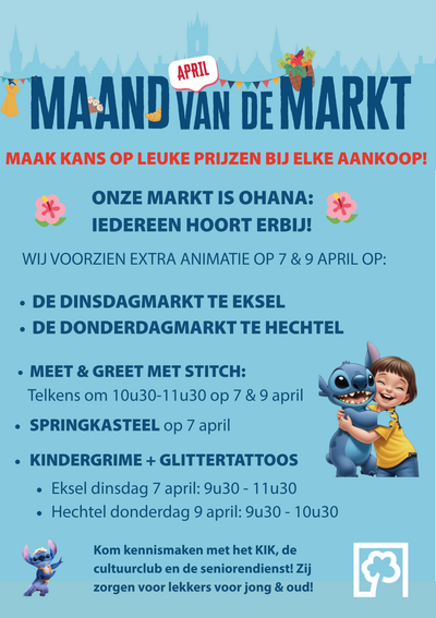 In de maand april staan de wekelijkse markten in Hechtel en in Eksel volop in de schijnwerpers. Samen met onze lokale marktkramers vieren we de Maand van de Markt, een feest vol gezelligheid, verrassingen en prachtige prijzen.