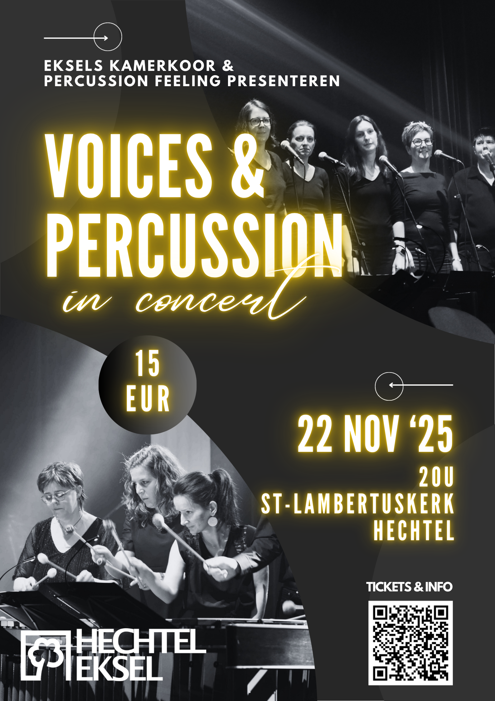 Burgemeester Jan Dalemans besluit: ‘Hechtel-Eksel bruist van talent. Met Percussion Feeling en het Eksels Kamerkoor laten we opnieuw zien hoeveel muzikaal vuur er in onze gemeente zit. Mis dit uniek optreden niet!’